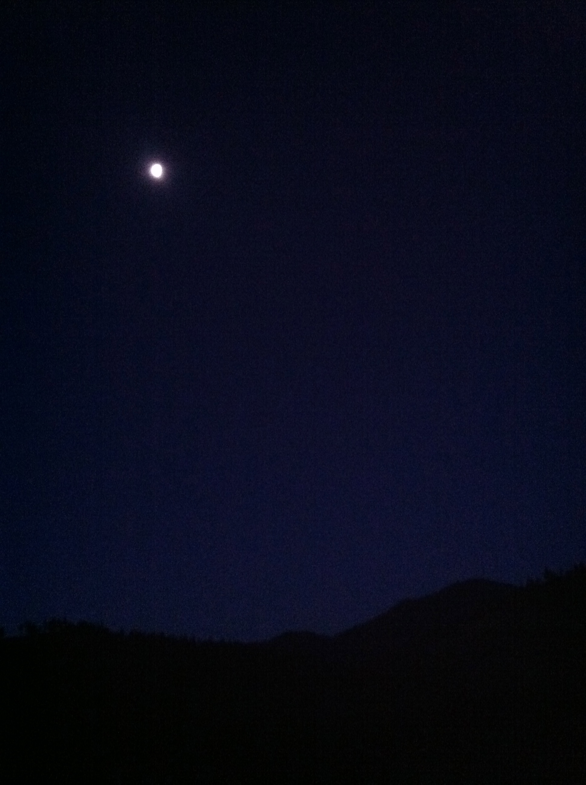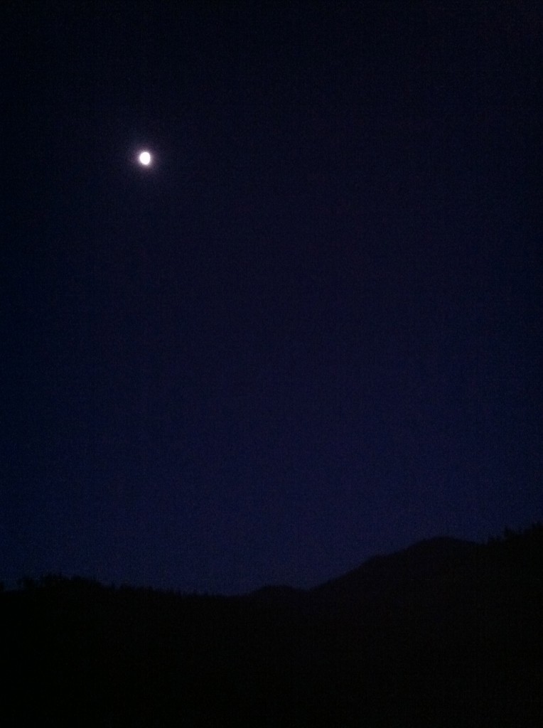 With the openness came wind (a hot wind since we were approaching a record-setting 100-degree day tomorrow) and a beautiful sky. Which means that not only was the full moon shining right down on me as it rose at 1am, but also that when first light came at 4am, I was right up with the sun. It’s weird to not be bothered by that when dragging myself out of bed for 9am near brings me to tears.
