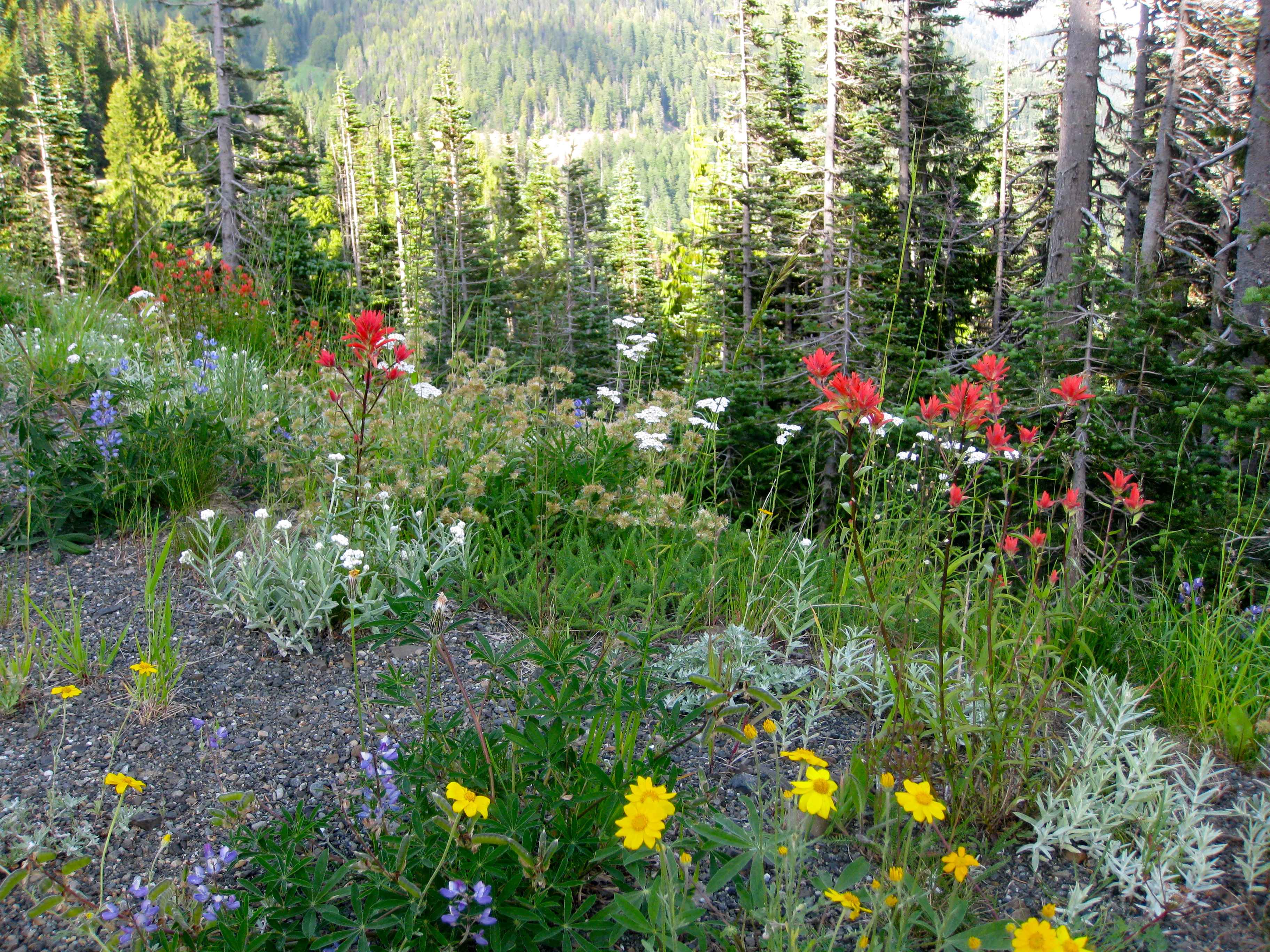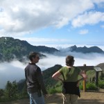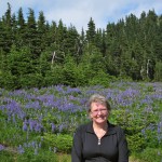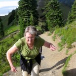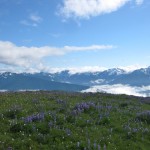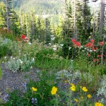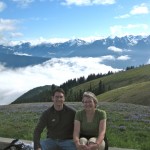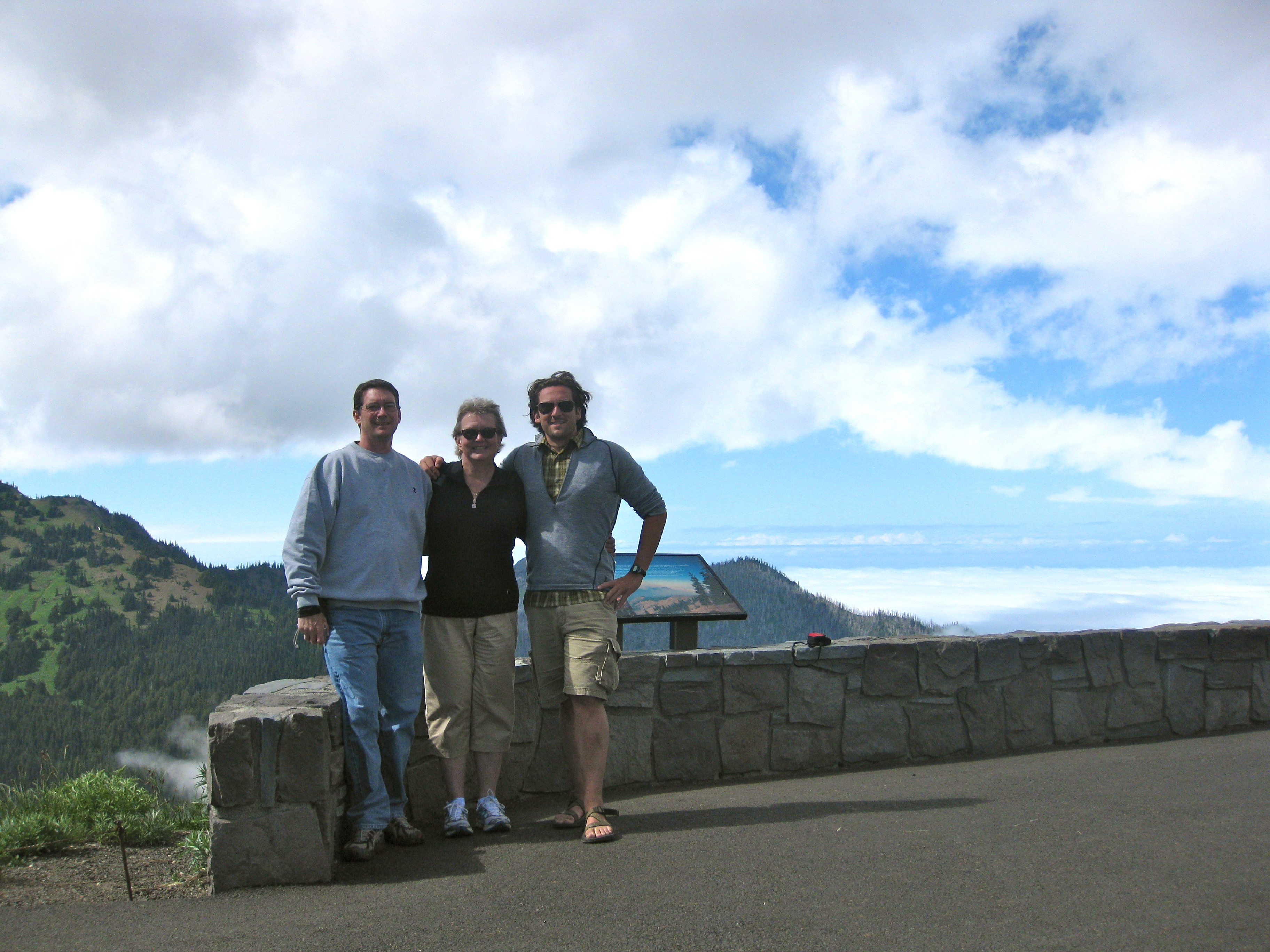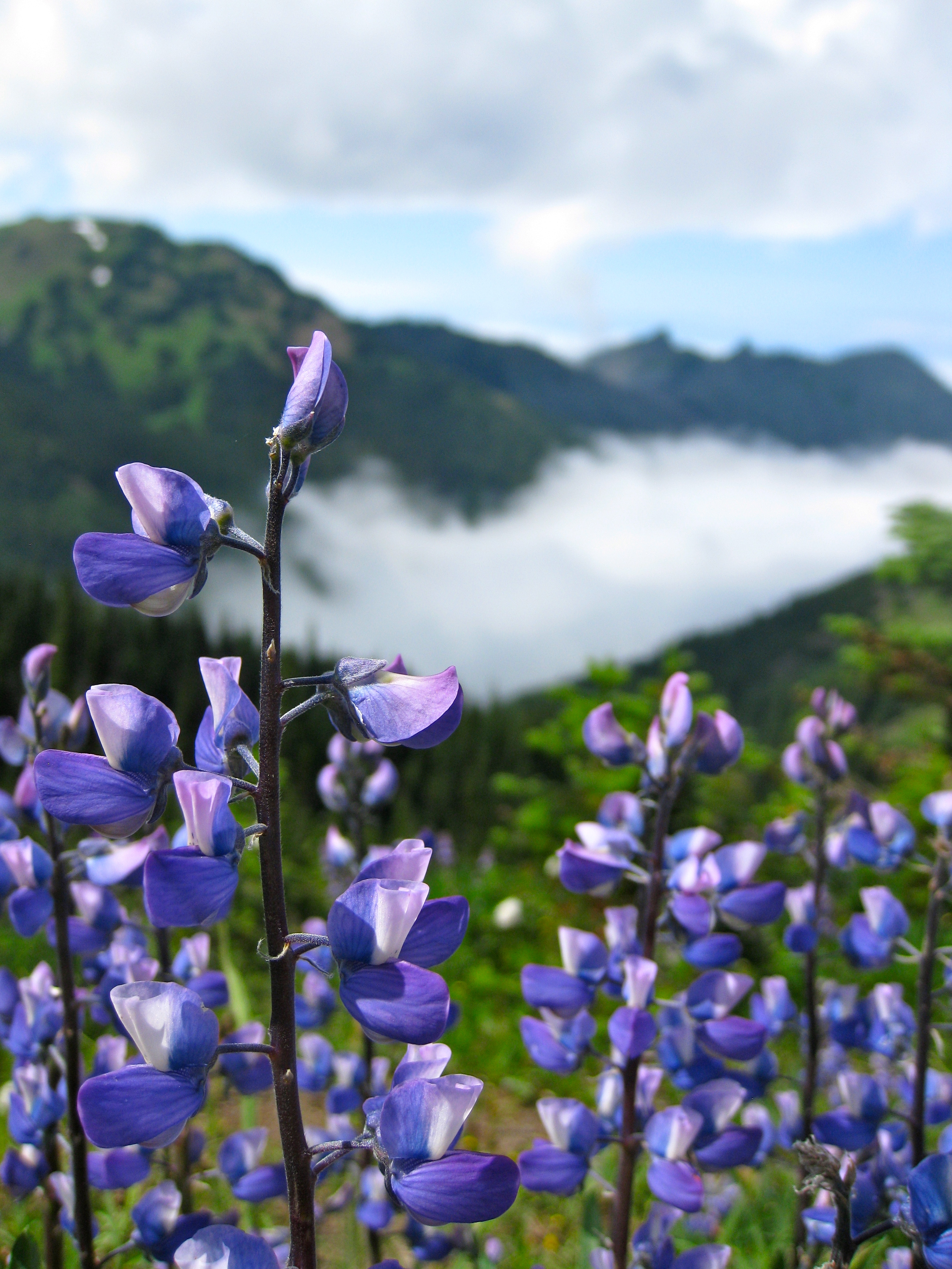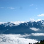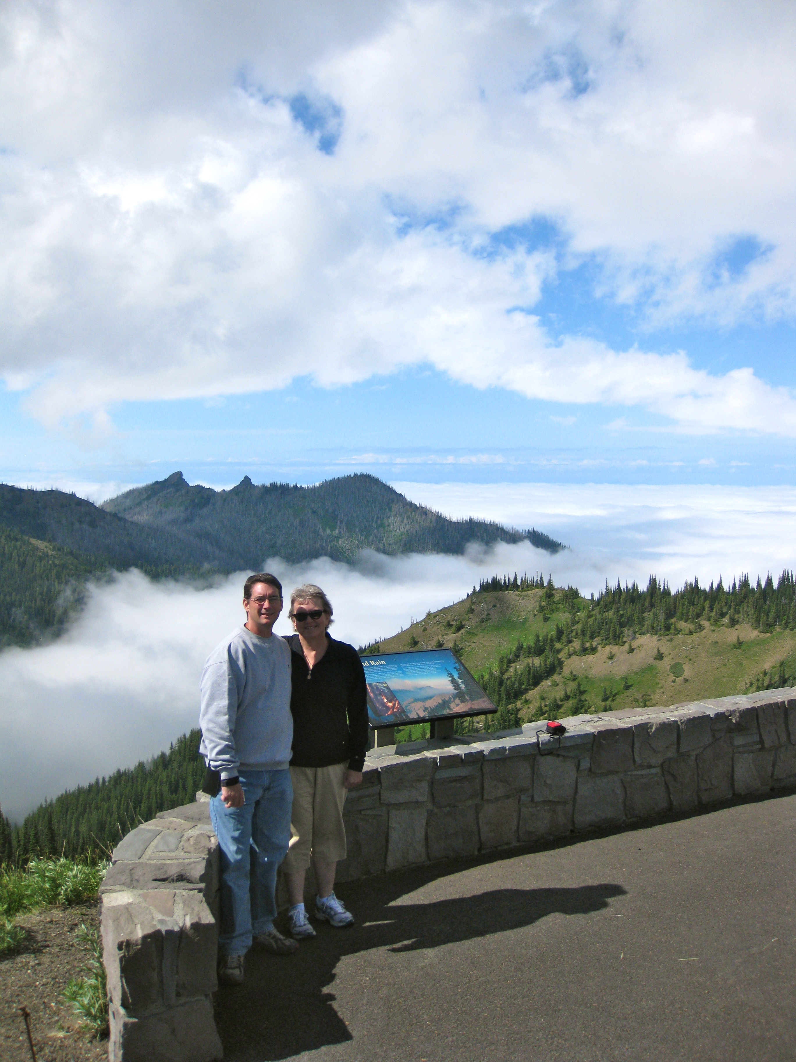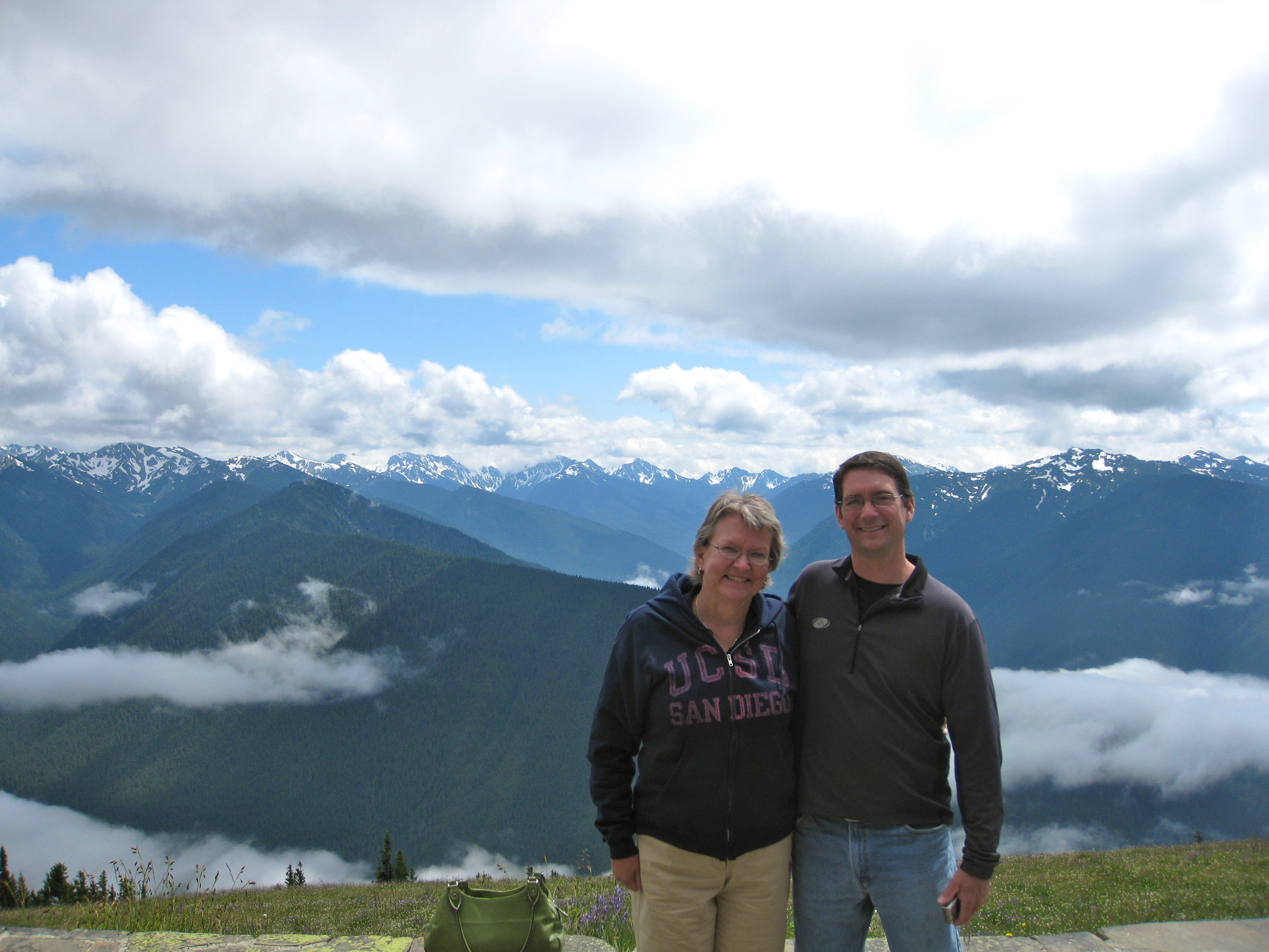 Donning a few extra layers we took a look around the area; to the west stood Mt. Olympus and the rest of the Olympic range; behind us were fields of lupine (a purple alpine flower), and all around us, as the click of several cameras indicated, were deer with their yearling fawns, out grazing in the fields. Making our way toward the visitor center Mom drew close to a deer grazing on a hillside; apparently when there are as many of them on the ridge as there are squirrels in central park, they become fairly accustomed to tourists with cameras. I took the first of many shots just as a woman started clapping to scare the animal off, in the interest of not letting it get domesticated. She had, of course, become an animal behavior expert after she’d finished taking her own pictures; Mom gave her the evil eye “What the heck did she do that for?” I patted her on the back and glared right along with her–damn right, Mom. The deer stuck around anyway.