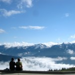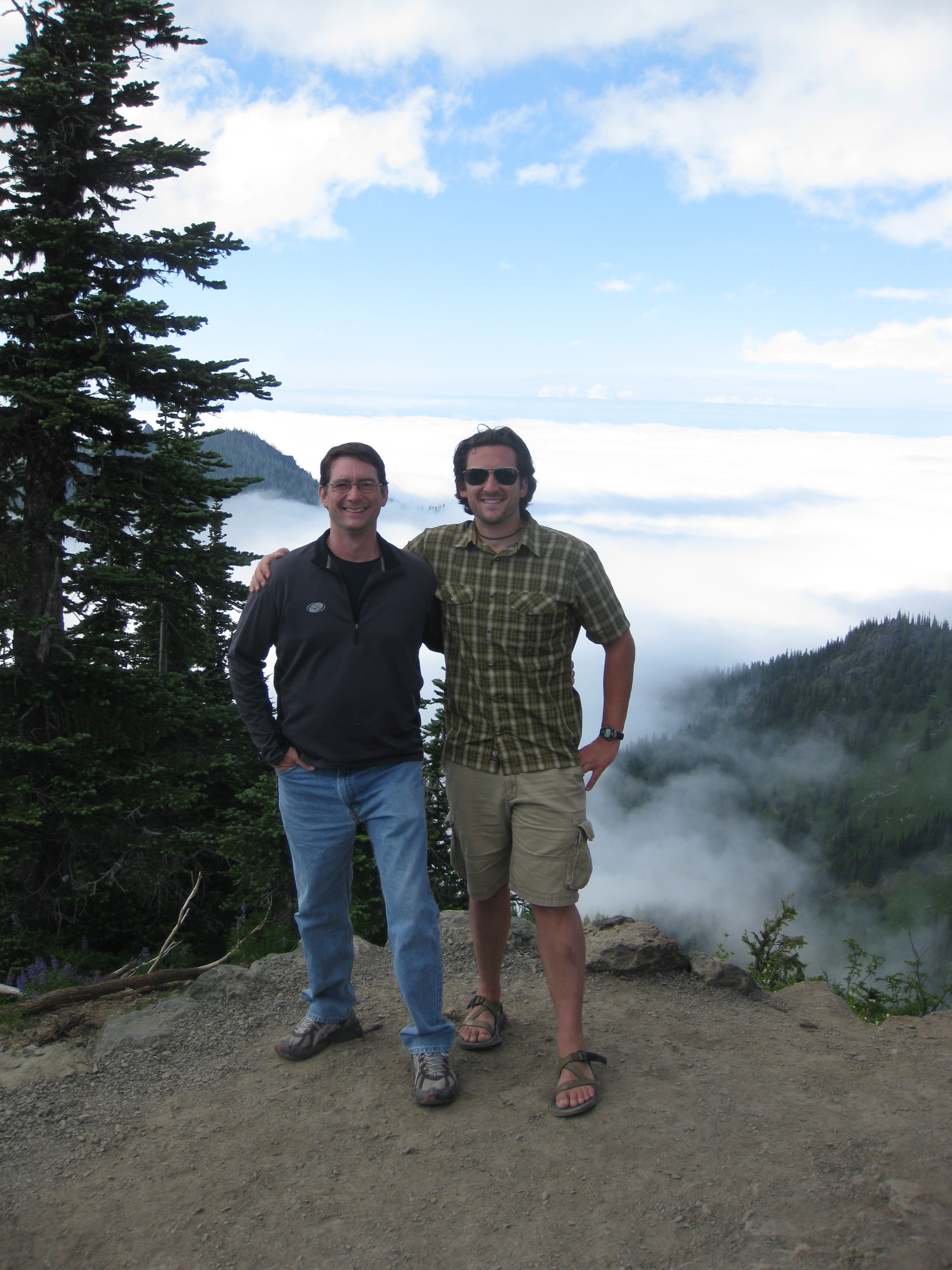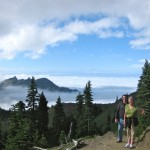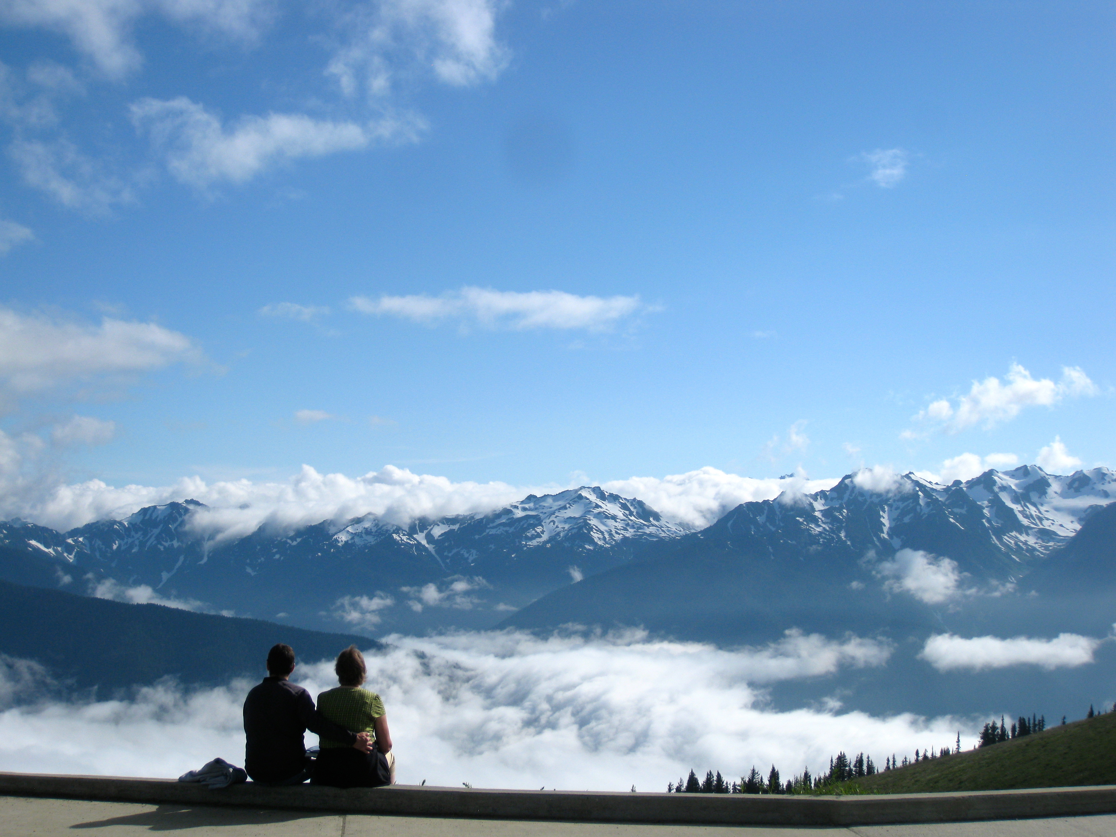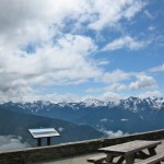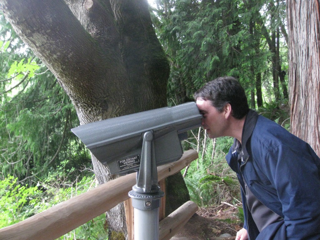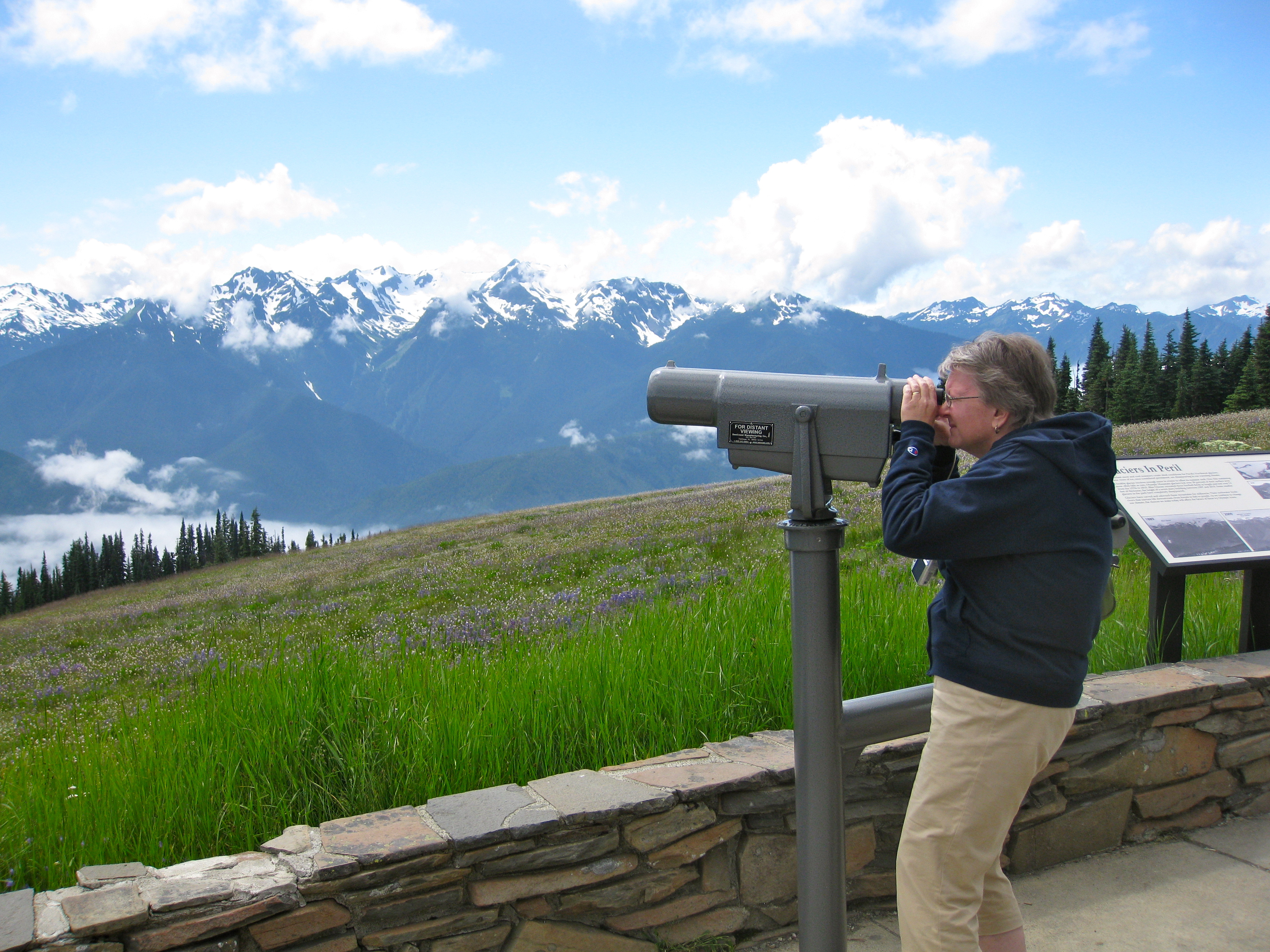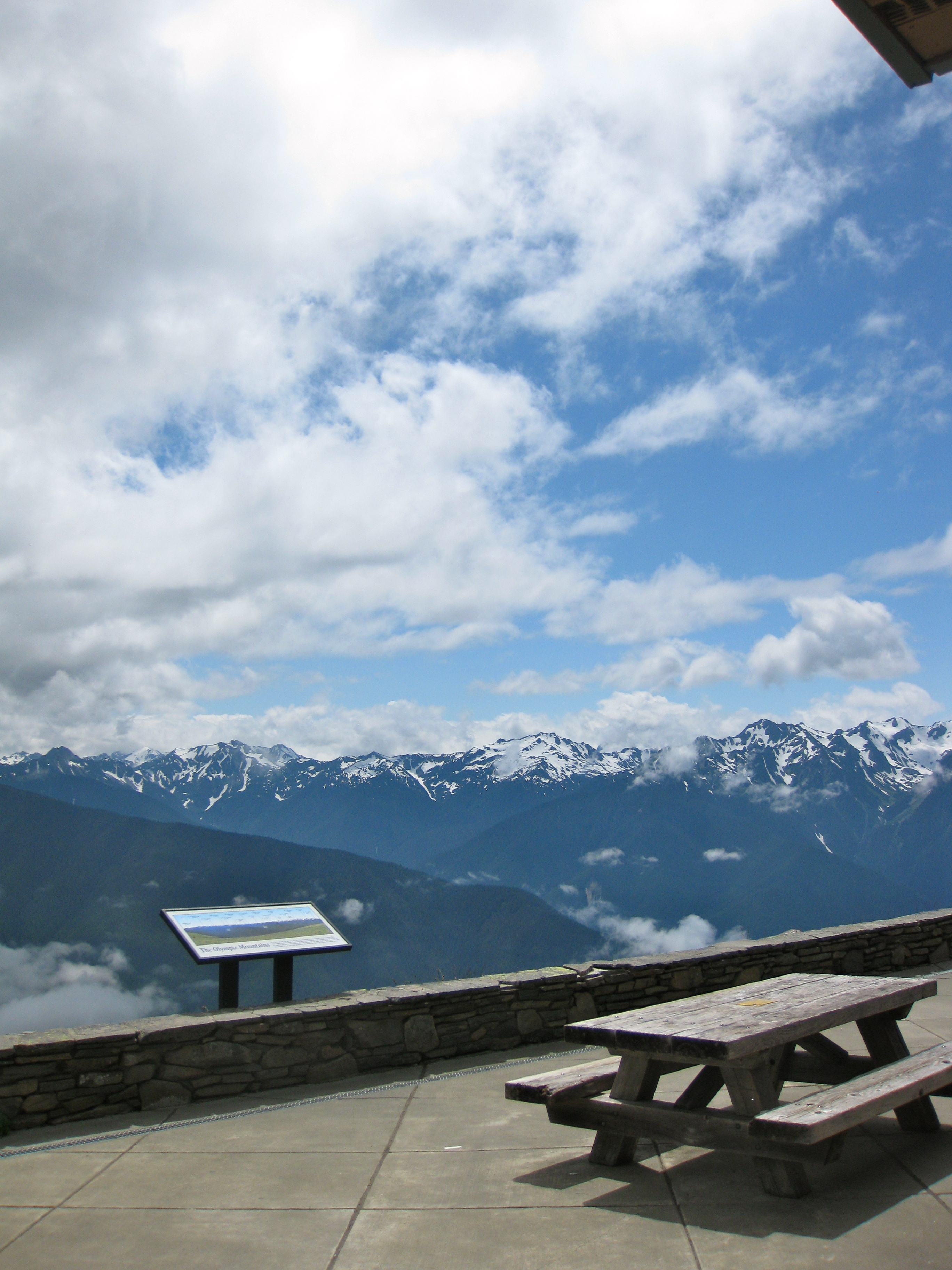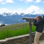 The sky opened up on the front deck as most of the tourists cleared out, giving us a great panoramic view of the snow-capped peaks across Grand Valley. Adjustable telescopes provided the opportunity to view the collection of shrinking hanging glaciers that call the Olympics home, and again, the deer popped their heads up from the brush on the entire hillside down into the valley.