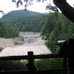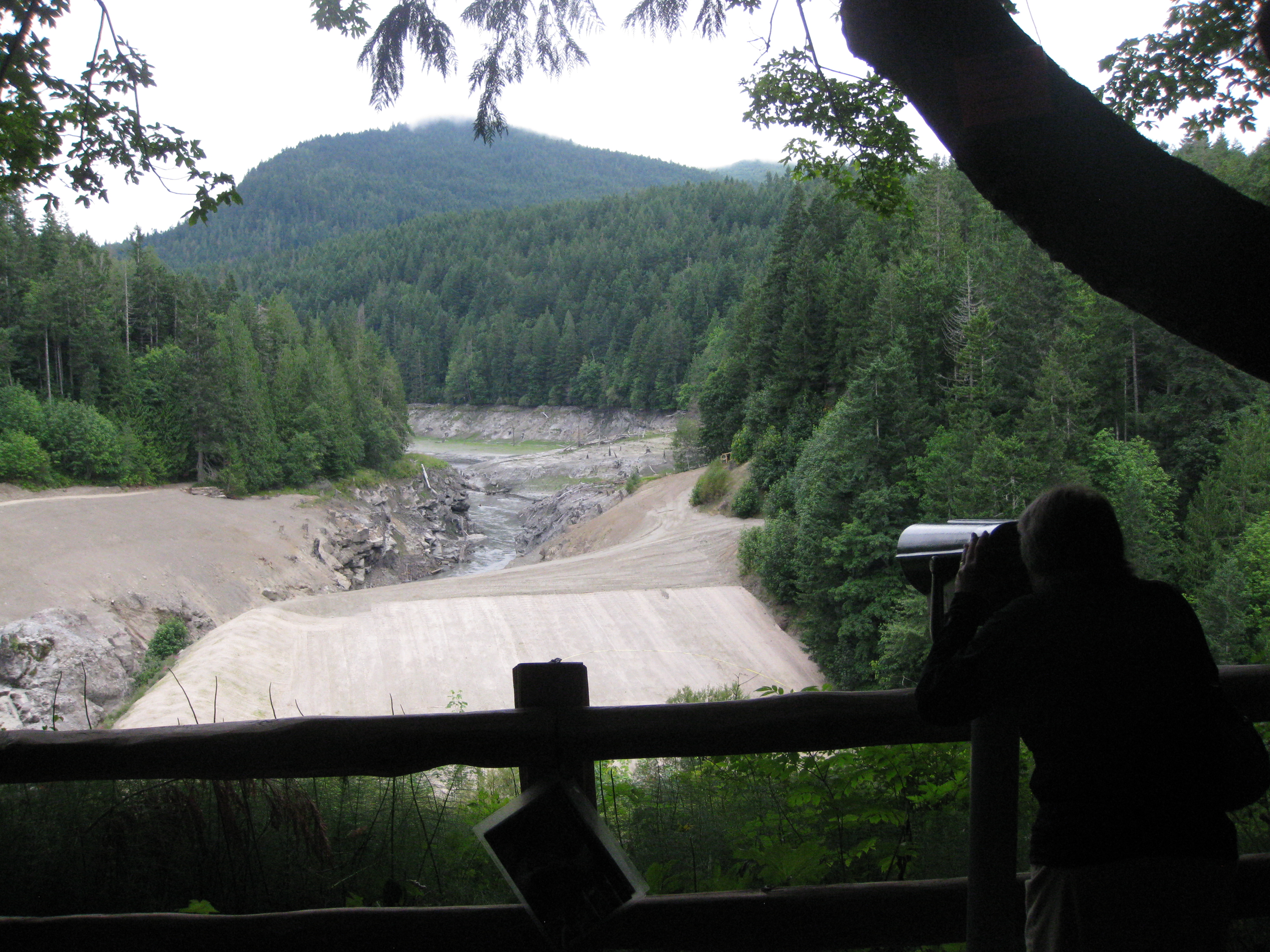 The next stop on the itinerary (it was already getting late) was one that the folks did for me. For almost a year I’d been obsessed with the Elwa Dam Removal project, and had even planned on attending the initial dam demolition (explosions!) but had been barred by the marriage of two good friends. Clearly they had no regard for the Elwa watershed or its homeless salmon. What I hadn’t known was that the viewing area (most of the region is closed due to shifting sediment from 100 years of river blockage) was a mere 20 minutes from the entrance of the park.