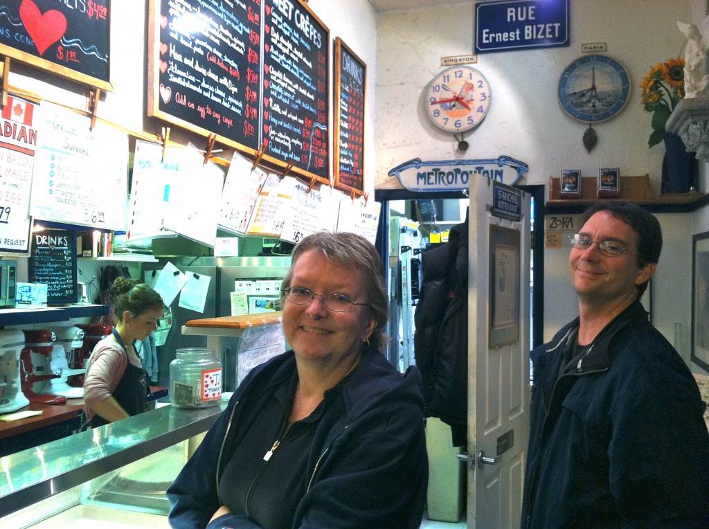 We raced back to make the earlier ferry, which didn’t exist because I’d somehow screwedup the times. With the day approaching the 9 o’clock hour it seemed appropriate to consider dinner; fortunately, the Kingston ferry stop is home to a wonderful creperie. After we’d parked the car in the ferry line we walked to the place, ordered some crepes, and enjoyed the evening air on an outside table. In a moment of unfortunate timing, a large group walked up before we had a chance to order a dessert crepe, and as cars began to unload I became too nervous to wait any longer; it was time to head back to the car. Later reports would indicate that we did indeed have plenty of time to order the crepes, and for that, Mom, I still apologize.