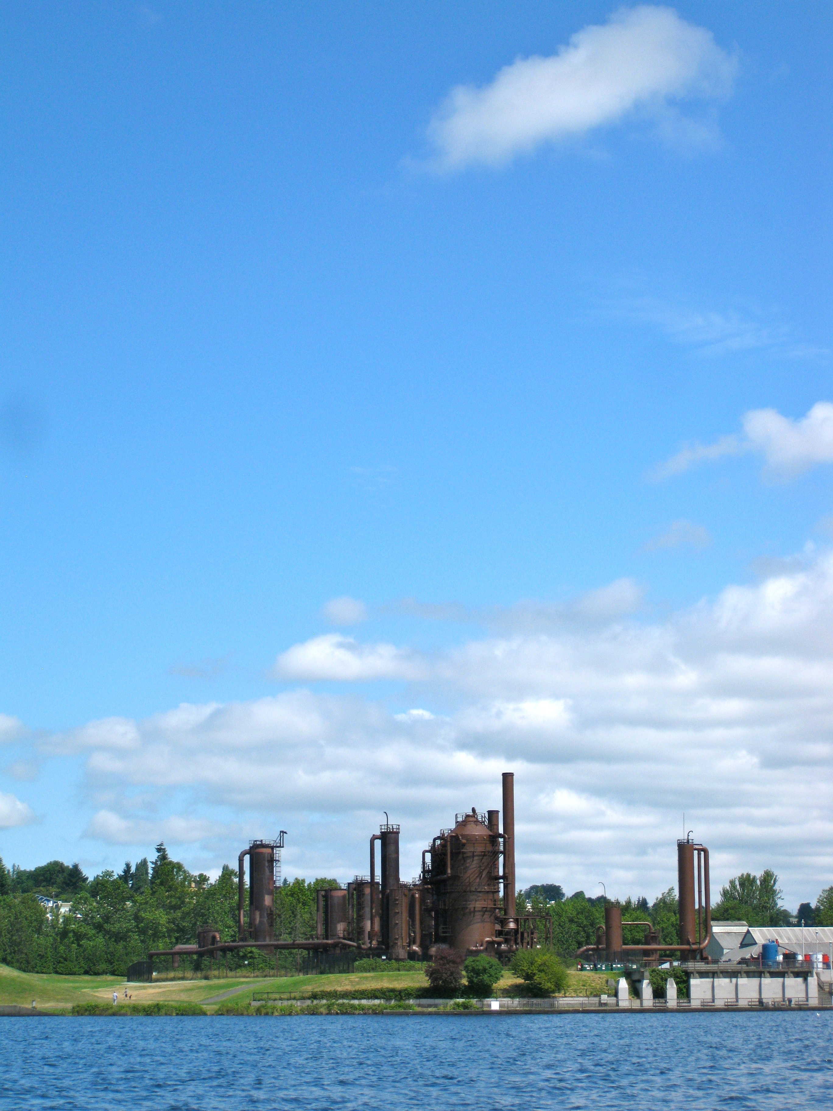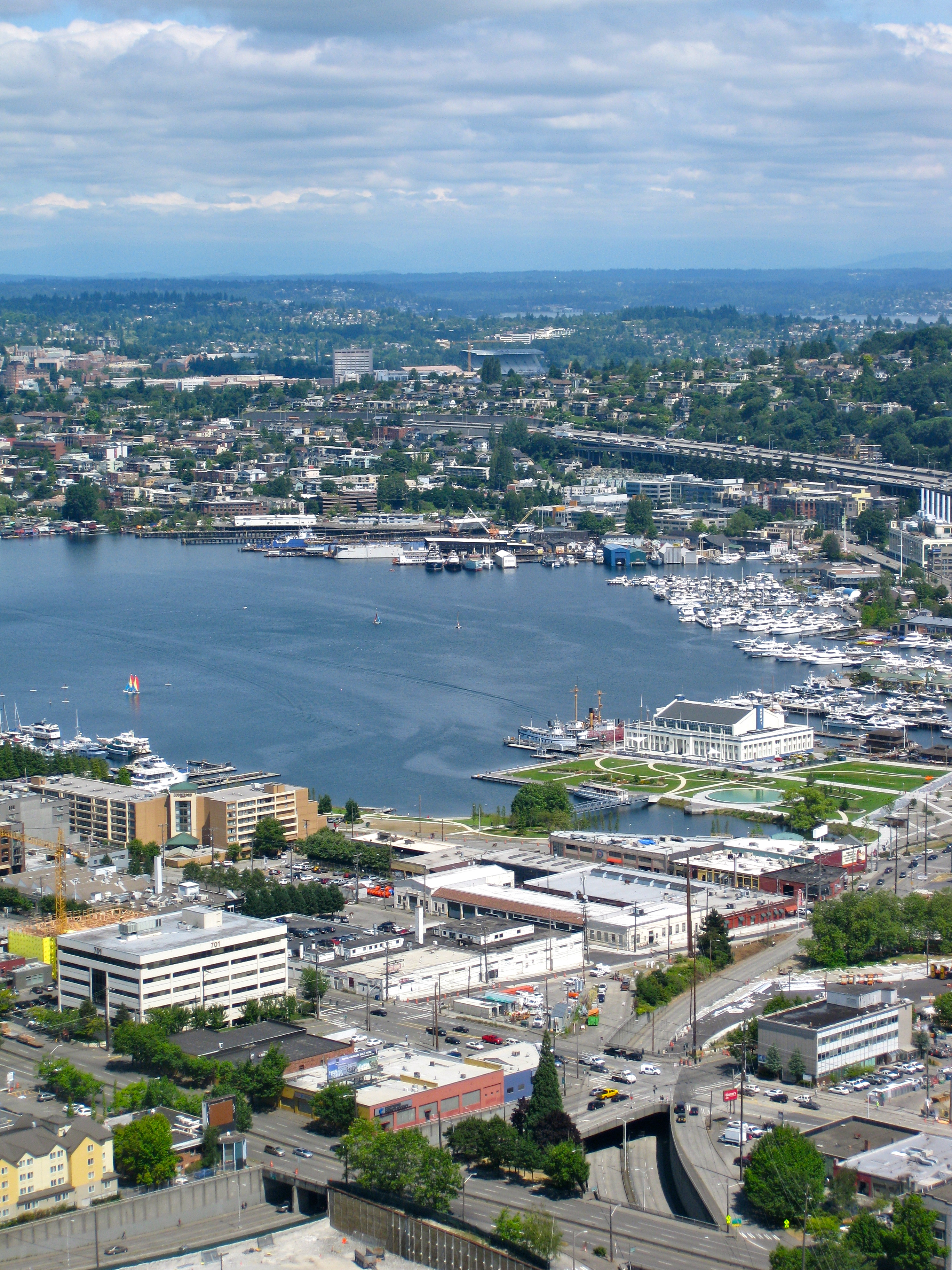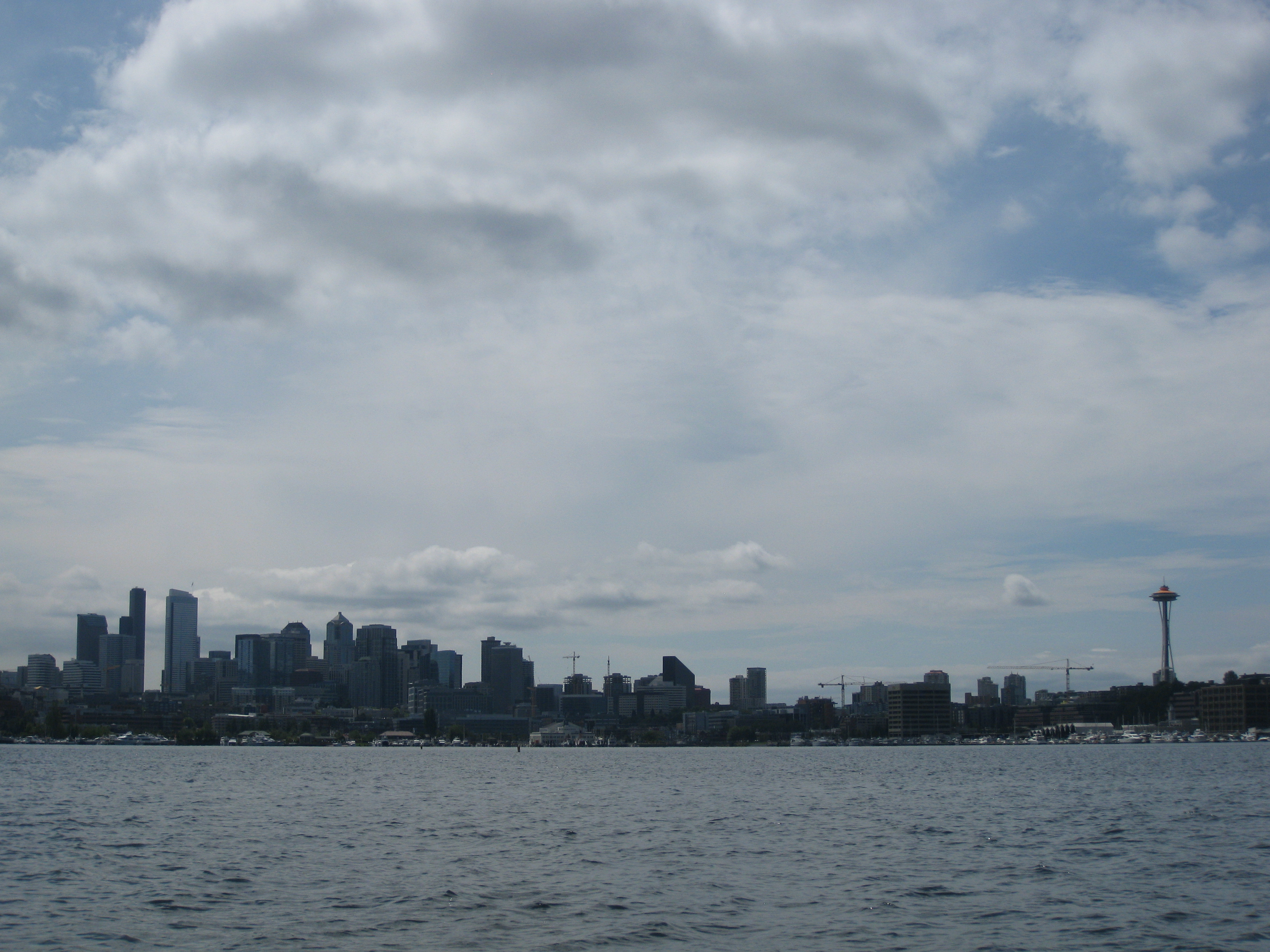 I was of course happy to do it, doing my best to quash my displeasure of crowds and all things goofy. So of course our first stop after parking downtown was at Seattle Duck Tours to buy a ticket for a later time, but since they had room we opted to depart in 6 minutes. After a brief detour to a set of porta-potties that likely violated the Geneva Convention, we climbed into the back of the WWII era amphibious vehicle and took our seats as the guide began giving a shpeel about safety while intermixing a number of canned jokes and crowdpleasers. Rarely have I felt so painfully Seattle as I did when I leaned over to my brother and whispered something to the effect of “this has so been done before.” Also, that I knew the Space Needle before it was big.