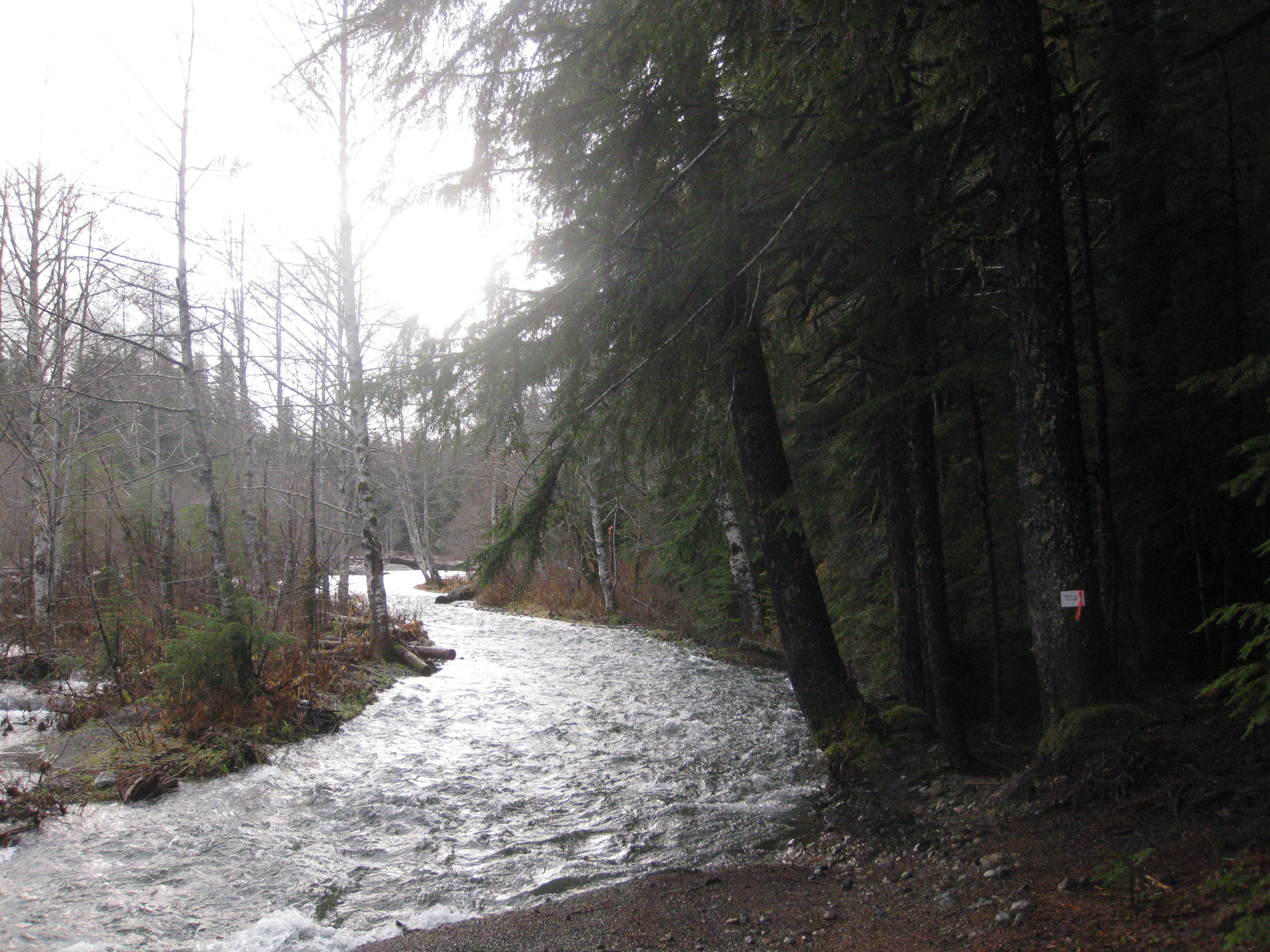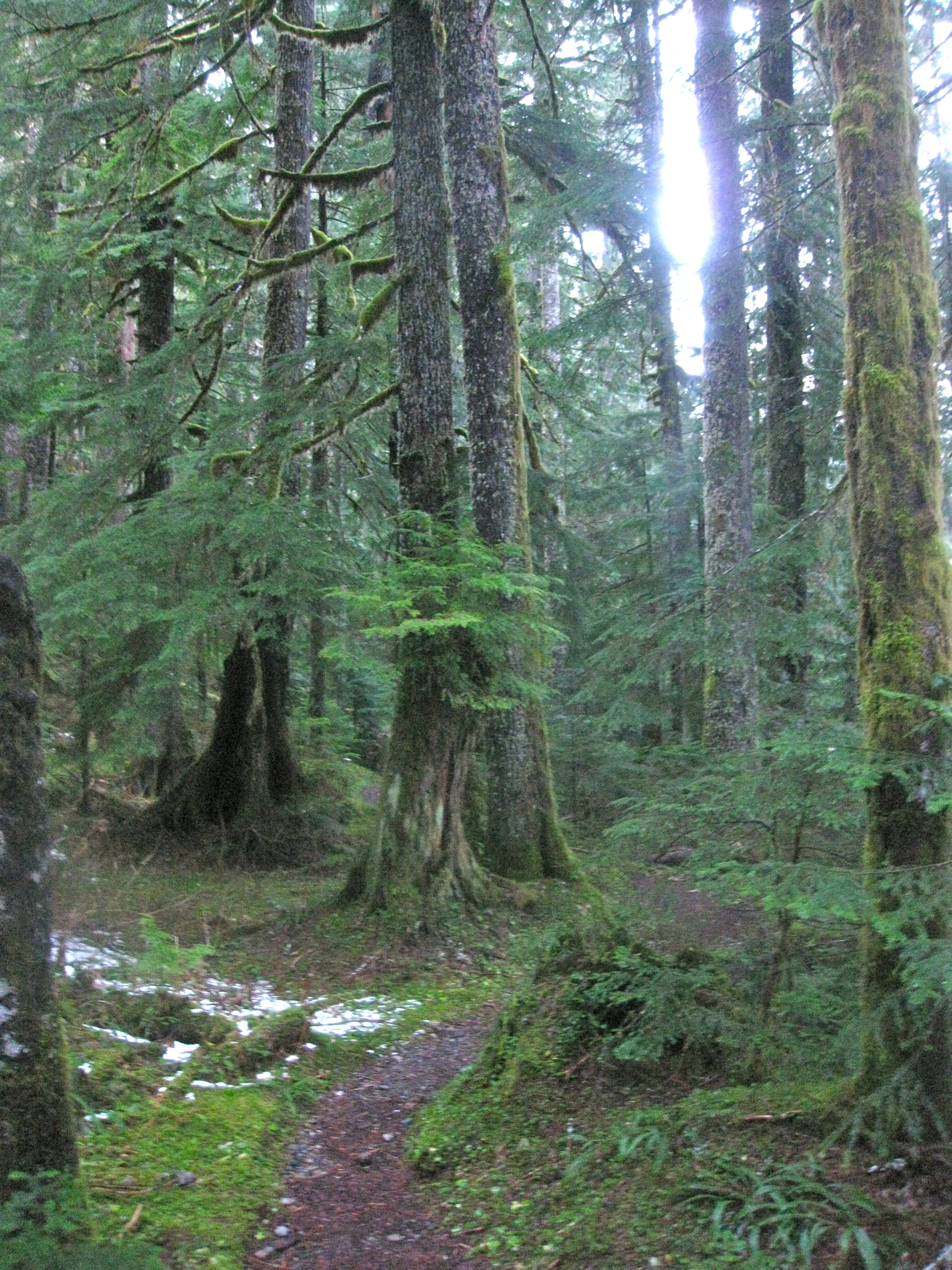 Around the half mile point you’ll come to a bridge that cuts right and goes into some older growth, which is a change you’re looking for. But this isn’t it. Continue straight toward Weden Creek.